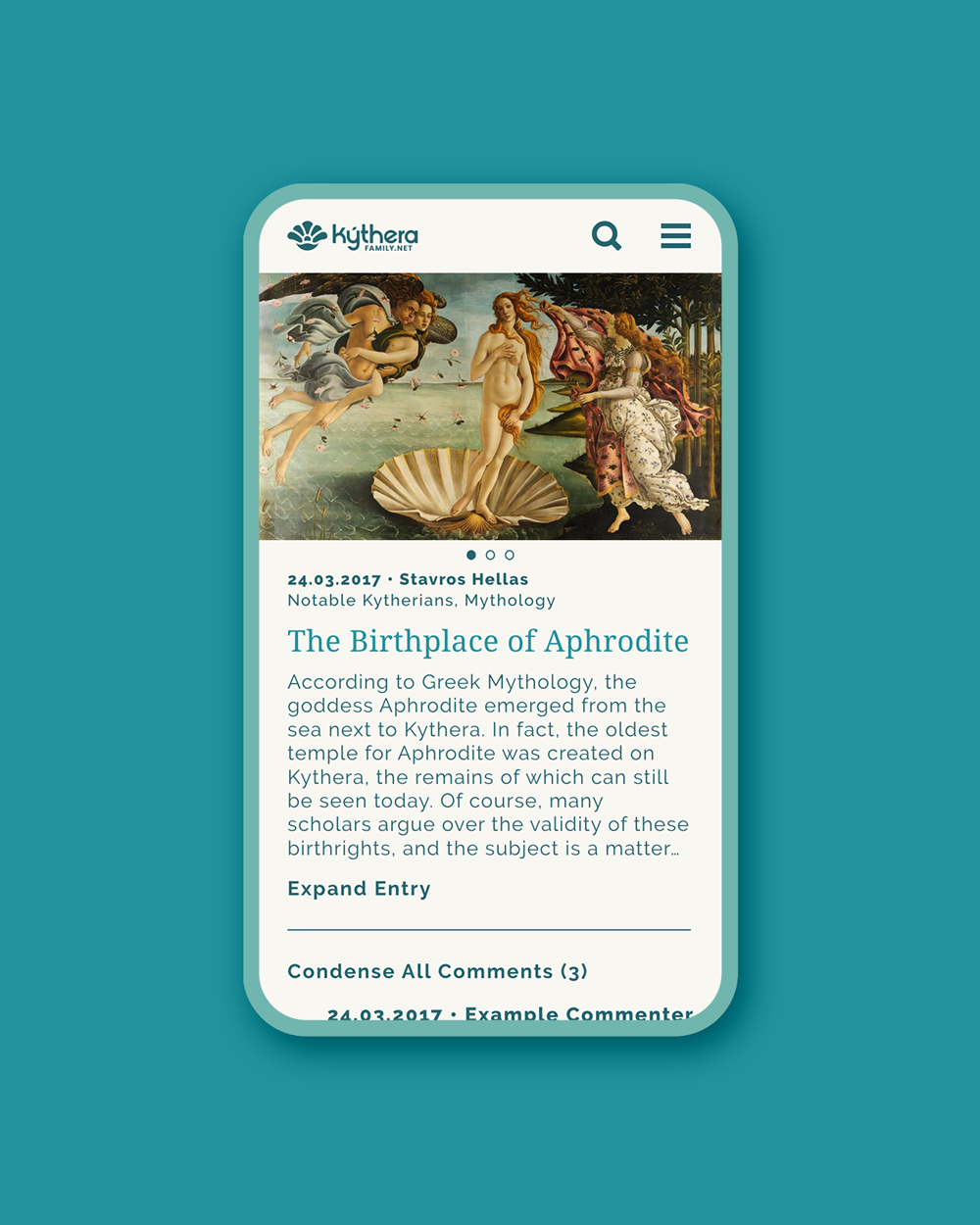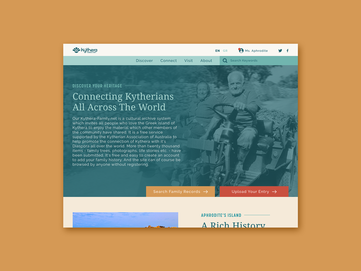 Kythera Family is a cultural and historical archive system which connects the island of Kythera with its diaspora. The web platform is utilized by Kytherians all over to the world to discover the island’s history and find Greek ancestery. Blog entries and chats can be conducted by anyone for free. The platfom has archived thousands of documents that are easy to explore.